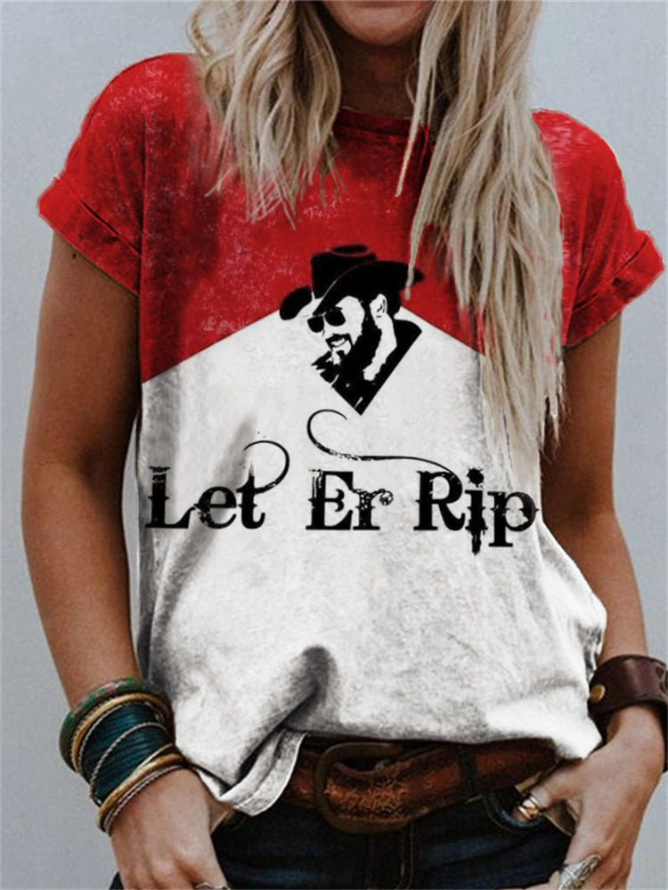 Western Cornbread Print Tie Dye Crewneck T Shirt