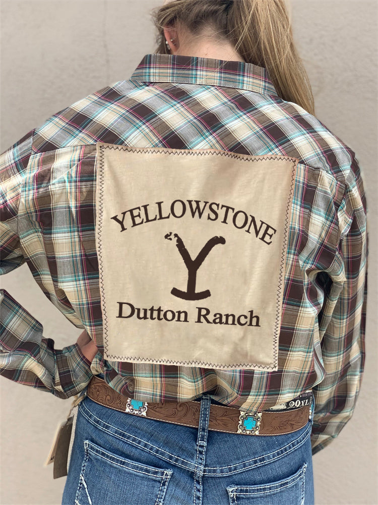 Western Logo Graphic Patch Vintage Plaid Blouse