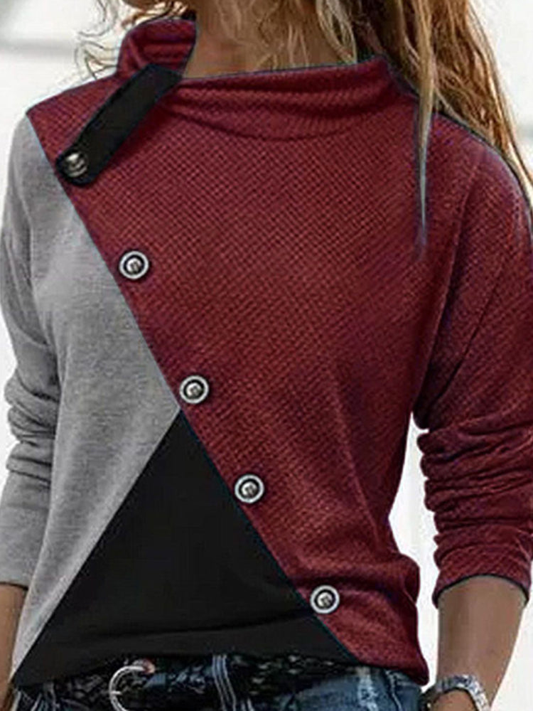 Colorblock Long Sleeve Turtleneck T-Shirt