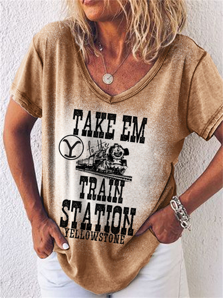 Wisherryy Small V-Neck Irregular Stripes Printed T-Shirt