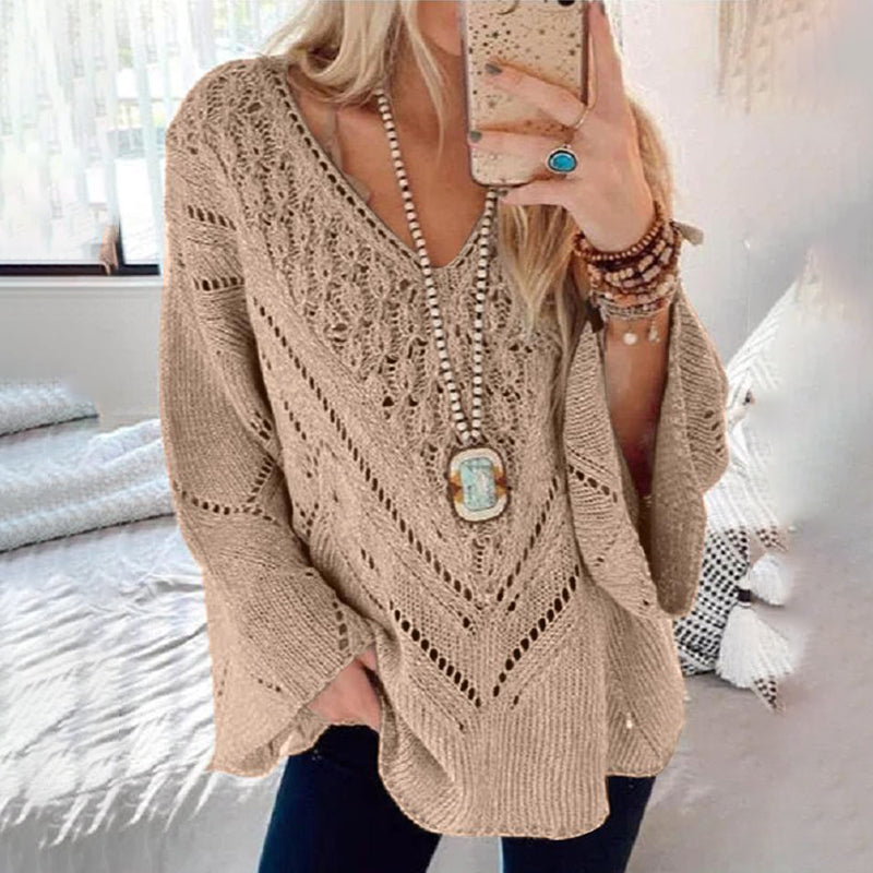 Casual Loose Cutout V Neck Sweater