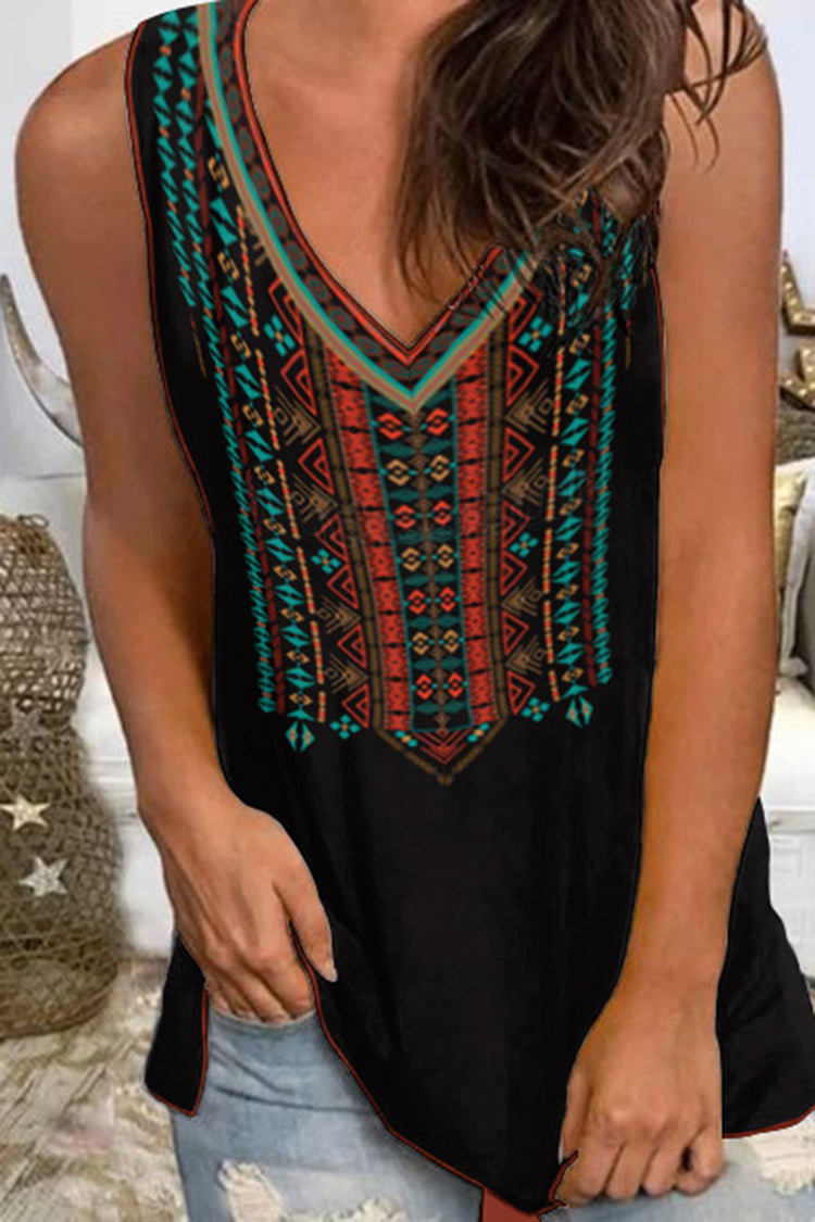 Wisherryy Casual V Neck Print Sleeveless Tank Top