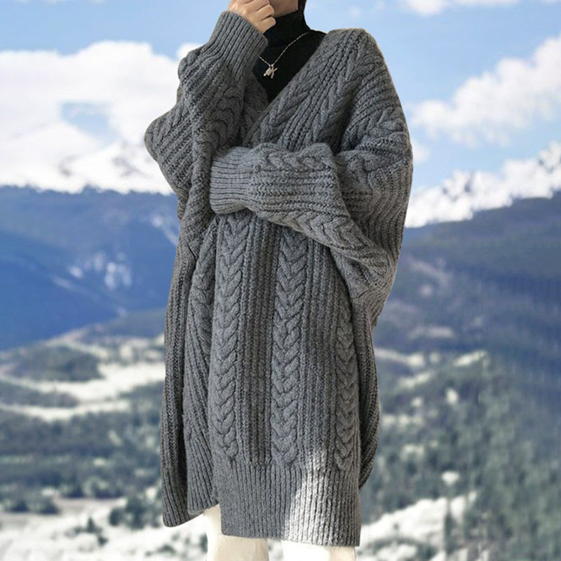 V-Neck Solid Color Mid-Length Sweater Cardigan
