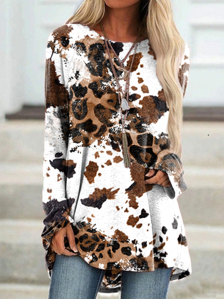 Vintage Western Leopard Print Crew Neck Tunic